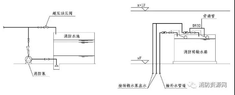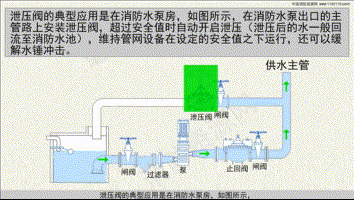 以安裝超壓泄壓閥為例,泄壓閥安裝在消防水泵出口的主管路上,超過(guò)安全值時(shí)自動(dòng)開(kāi)啟泄壓(泄壓后的水一般回流至消防水池),壓力正常后自動(dòng)關(guān)閉,維持管網(wǎng)設備在設定的安全值之下運行,還可以緩解水錘沖擊。